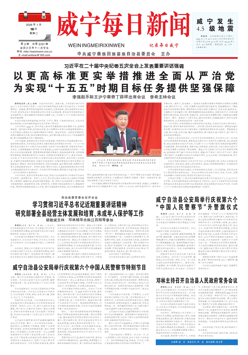 2026年1月13日威宁每日新闻