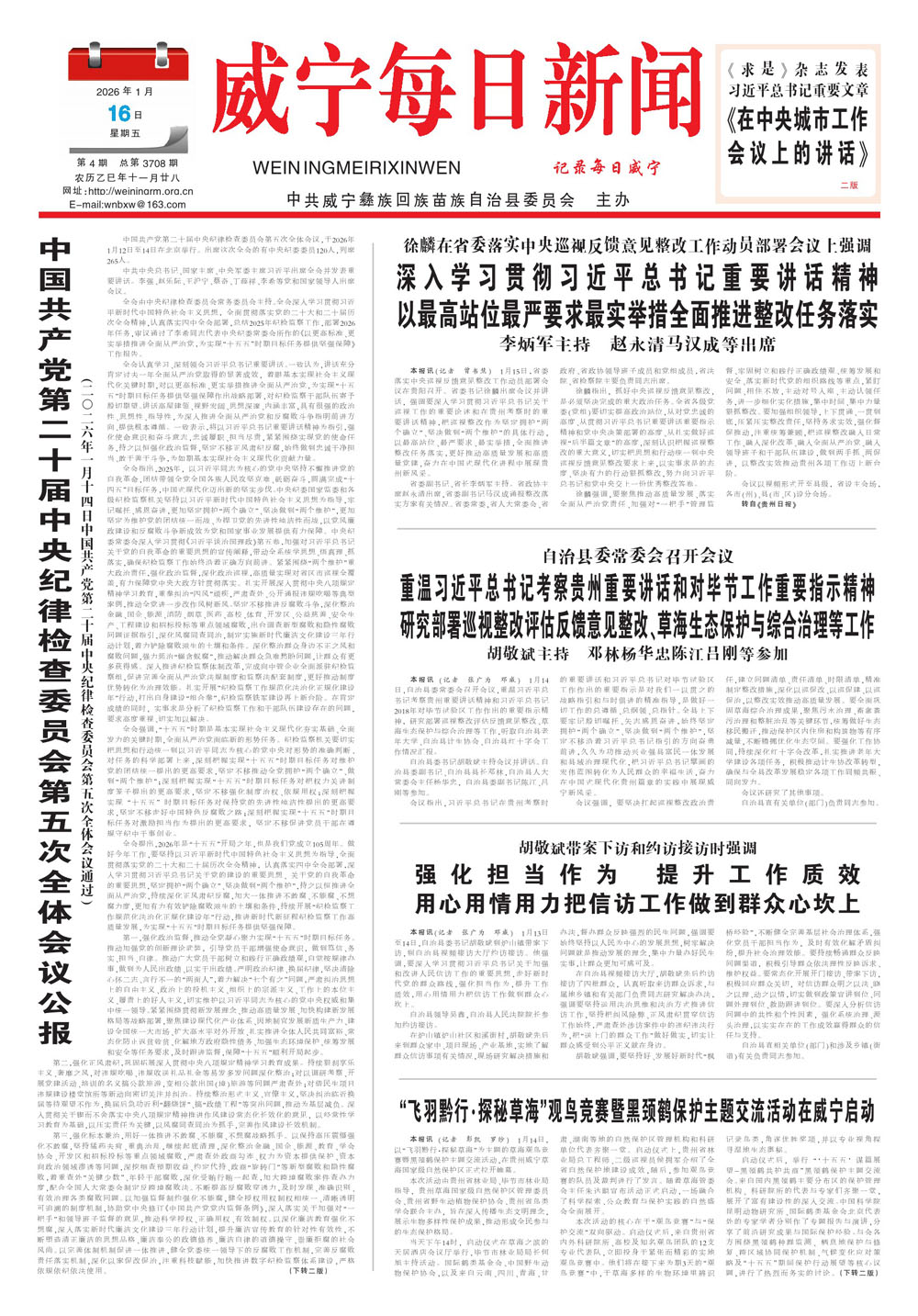 2026年1月16日威宁每日新闻