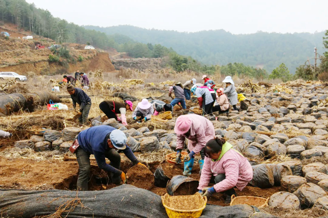 哲觉镇群众正在采收中药材天麻。(汪仟 摄)