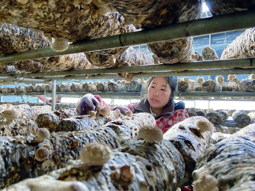 正在指导务工群众采摘香菇的李美情已从普通员工成长为管理人员,她告诉记者,这份稳定的工作,让她们实现了“挣钱顾家两不误”,见证了家乡产业从无到有、从小到大的发展历程。“这两天二茬菇已经上市,我主要在这里负责管理,也学到了很多经验。我在这儿干了十年了,工资每月4000多元。”