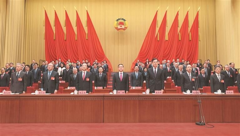 上午9时,大会开幕,全体起立,高唱中华人民共和国国歌。