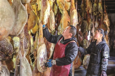 “冬天是火腿生产的‘黄金期’,我们正在赶制2万多支,每一支都要配得上‘威宁火腿’名字。”生产经理苏健华戴着手套,指尖轻轻抚过火腿表面。他身后,不仅是日复一日的坚守,也是一片水土滋养的产业故事。