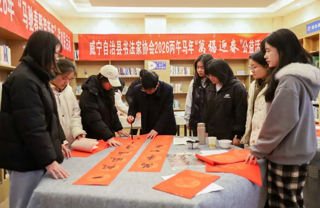 本报讯(记者 汪 仟 见习记者 陈 遥) 新春将至,年味渐浓。1月30日,威宁自治县“我们的中国梦·文化进万家”暨“墨香传福韵·光影记团圆”新时代文明实践活动正式启动。活动特邀本地书法爱好者现场挥毫泼墨,为市民送上饱含年味与祝福的手写春联。