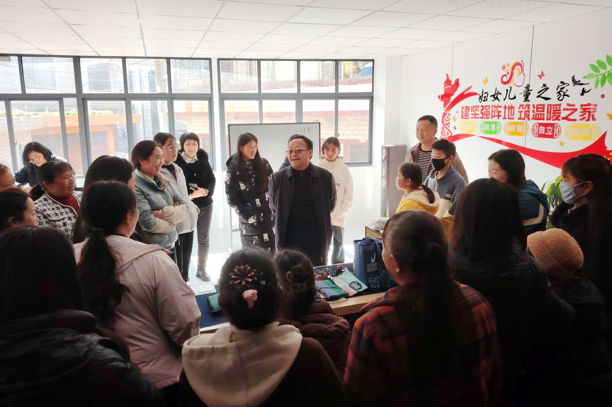 自治县人大常委会党组书记、主任杨华忠(中)在麻乍镇新水村调研妇女儿童之家项目运行情况
