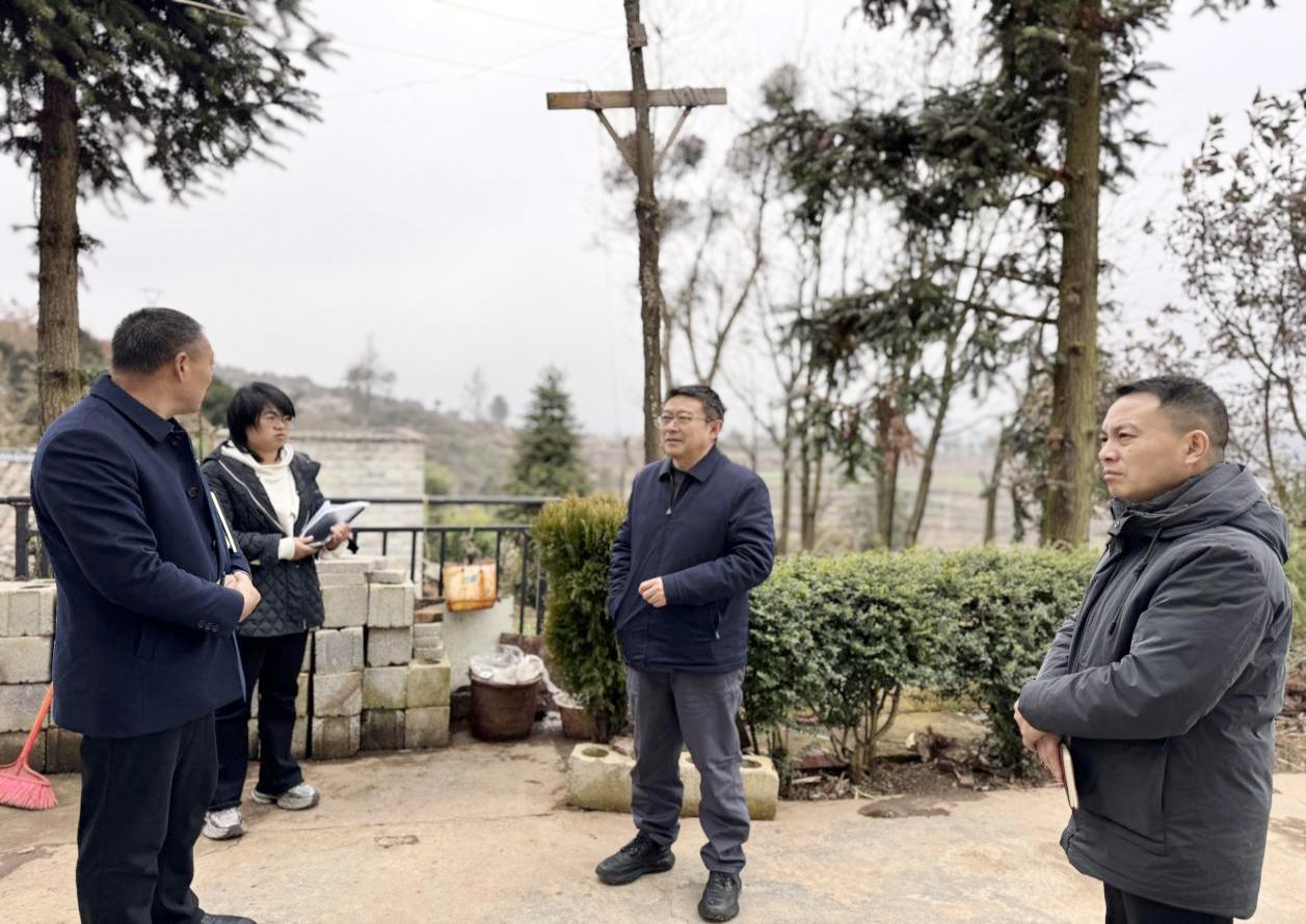 自治县人大常委会副主任周乾(中)在开华街道北镇社区督导巩固拓展脱贫攻坚成果同乡村振兴有效衔接考核评估迎检工作