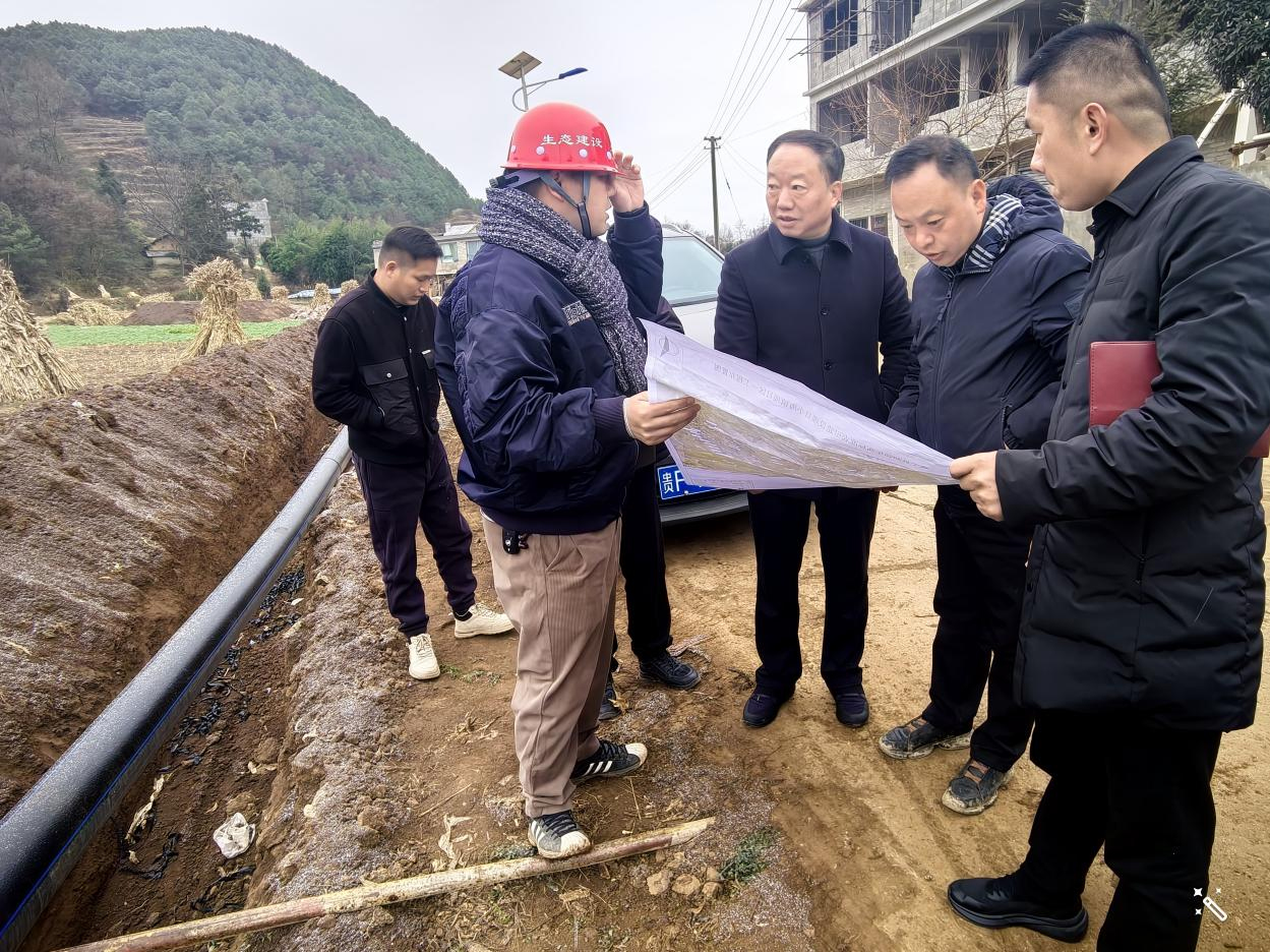 自治县人大常委会党组副书记、副主任潘卫东(右三)在小海镇督导高标准农田建设工作