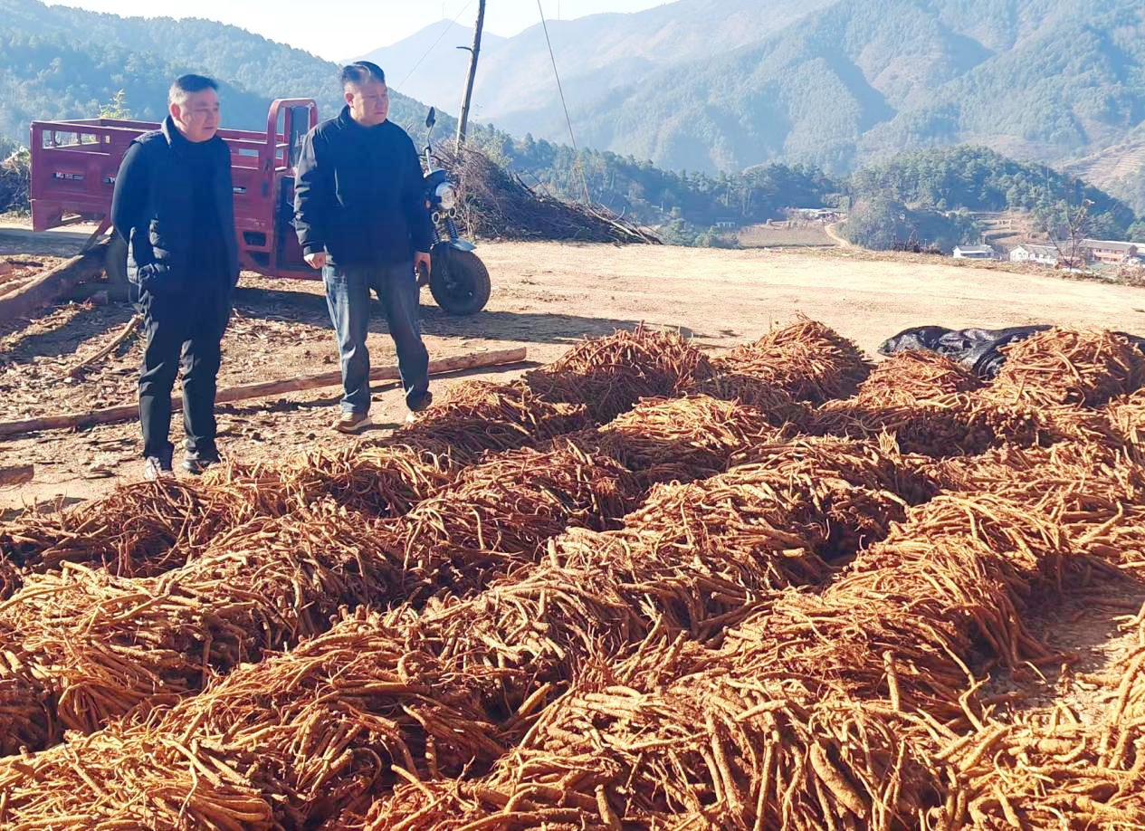 自治县人大常委会党组成员、副主任孔天寿(左一)在岔河镇调研指导产业发展工作