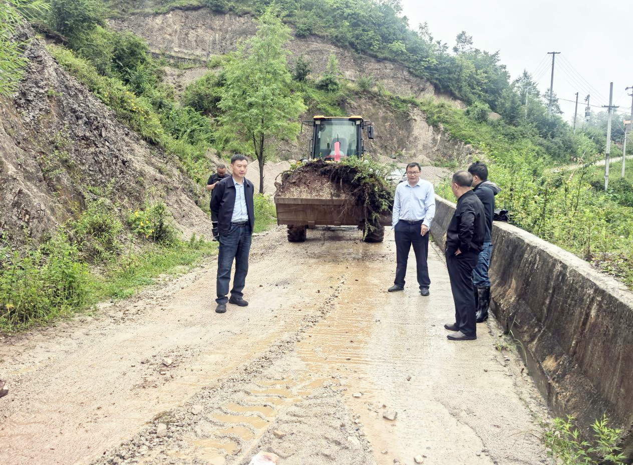 自治县人大常委会党组成员、副主任朱少康(左一)深入石门乡全发村督导防汛防洪及地质灾害防范工作