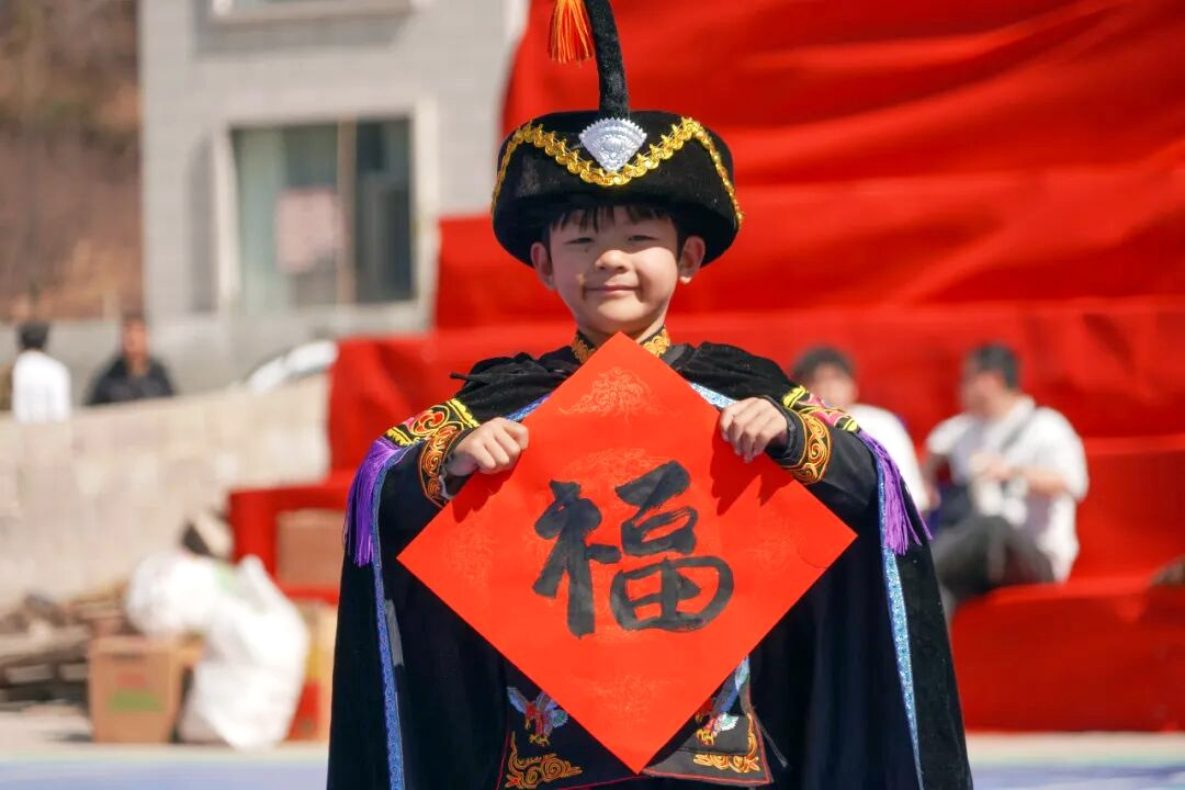 儿童展示领取到的福字