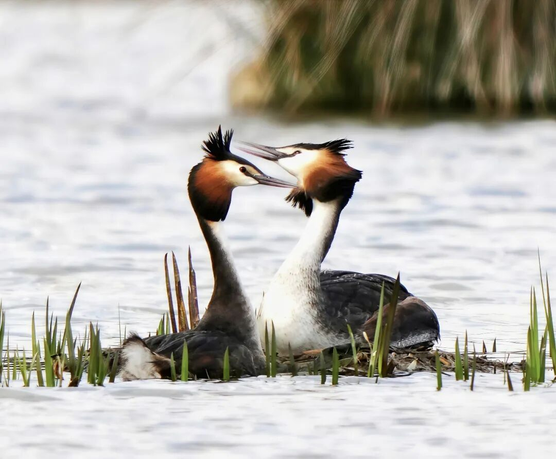 3月1日,记者在贵州草海国家级自然保护区湿地捕捉到一对凤头