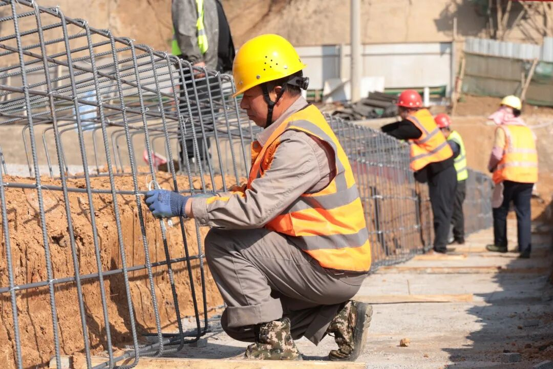 在施工现场,务工群众张永乖正熟练地砌筑着格宾笼,额头上渗出汗珠。“这个工地从开工我一直都在,这几天天气好,我们早上7点就上工了,一天大概能砌6到7方。”他一边干活一边说,“虽然累点,但想到能把河堤修牢固,守护好周边的农田,辛苦点也值得。大家最近都在抢工期、赶进度,一定把工程干好。”