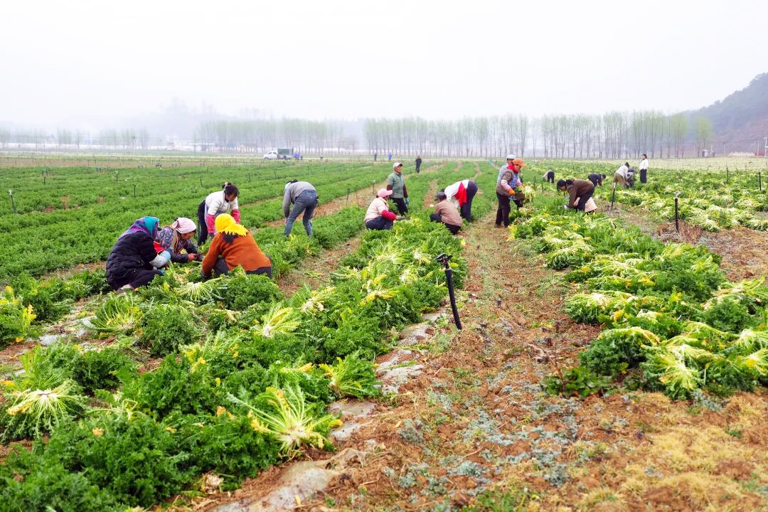 工人正在采收雪里蕻