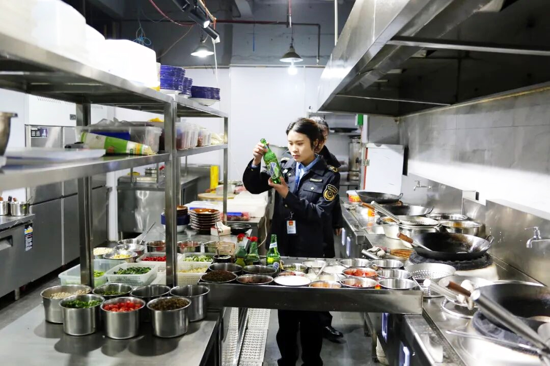 检查过程中,媒体镜头全程跟随,直击后厨第一线。执法人员重点核查了各经营单位的证照资质、从业人员健康管理、食品原料采购索证索票、加工制作过程、餐饮具清洗消毒以及环境卫生状况。