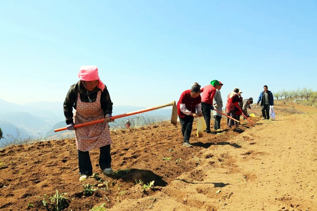 务工群众正忙着栽种党参