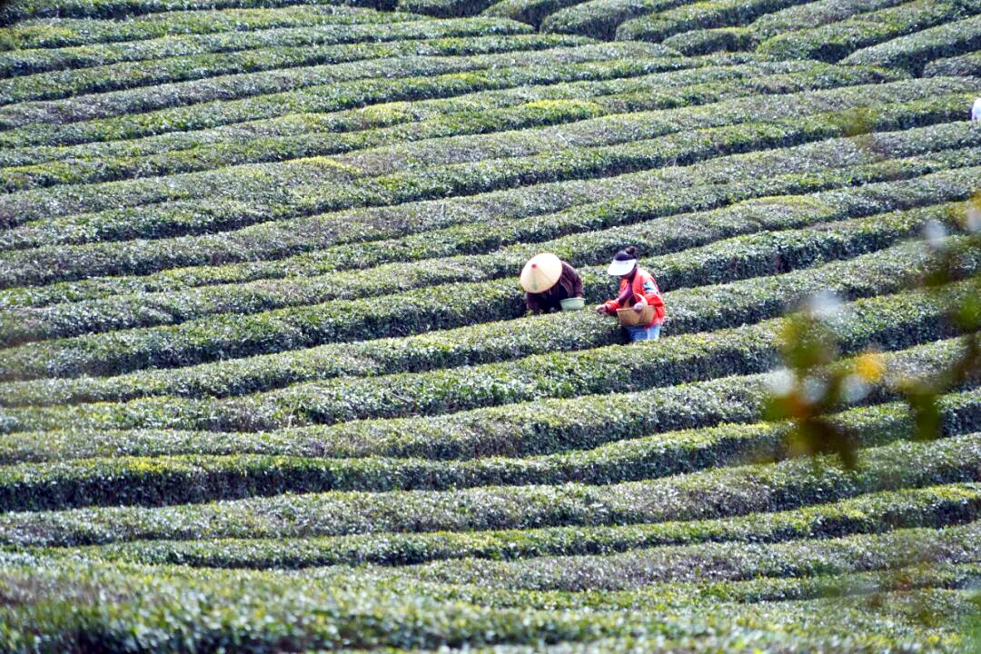 茶园里,采茶工们散落在山头,手指在茶枝间飞快起落。管文秀是众多忙碌身影中的一员,这位采茶老手已在茶园工作4年。“一天能采8两左右,每天有80元左右收入。”她一边熟练地采摘嫩芽,一边告诉记者。据了解,采茶期间,茶园日均用工150至400人,按采摘等级计酬,一芽一叶、一芽二叶、一芽多叶每斤价格从4元至40元不等。这些在家门口就业的岗位,让周边群众实现了务农、顾家、挣钱三不误。