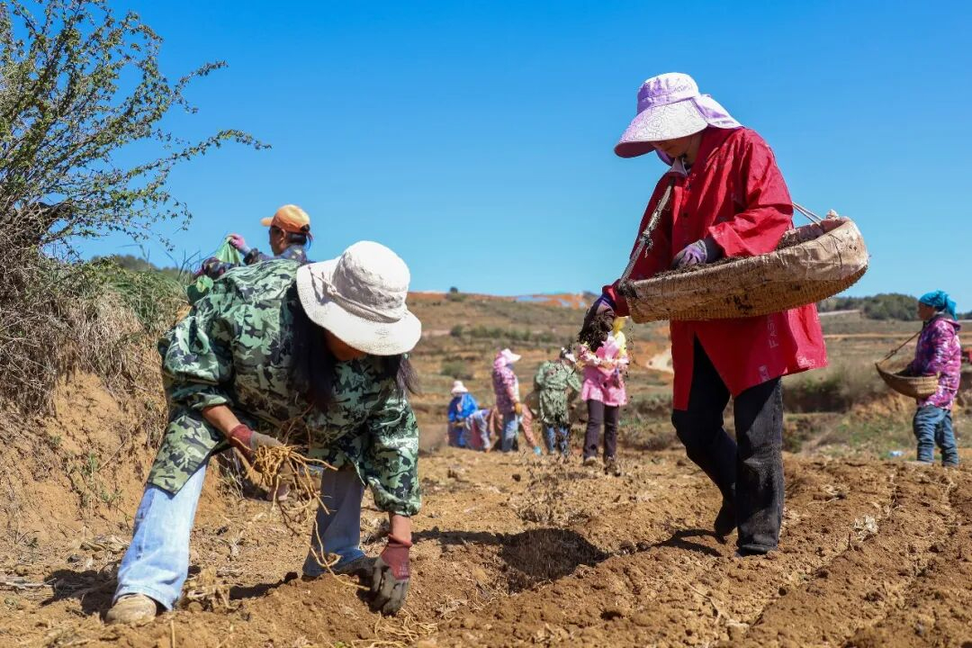 走进青松村折耳根种植基地,田间地头一派繁忙有序的劳作景象。为适配山地种植条件,基地创新采用传统与现代相结合的耕种模式,高效推进折耳根种植工作。空中,无人机满载种苗与农机肥料,精准开展运输,大幅提升春耕效率;田间,耕马牵引犁耙稳步作业,传统与现代相结合的耕作方式在乌蒙高原上默契配合,不仅提高了耕作效率更保证了耕种质量。