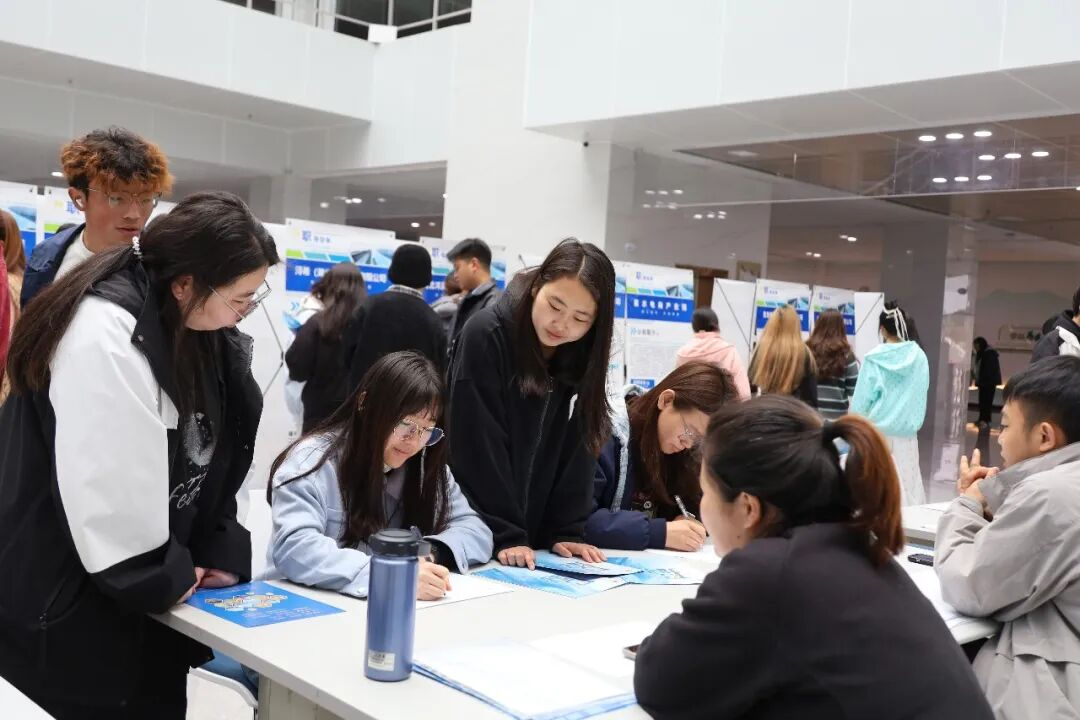 招聘会现场,各企业展位前咨询、投递简历的学生络绎不绝。大家在各展位间仔细比对岗位信息,认真了解岗位详情、薪资待遇与发展前景,积极寻求适配岗位,并主动与企业招聘人员沟通交流,不少学生现场与企业达成了初步就业意向。