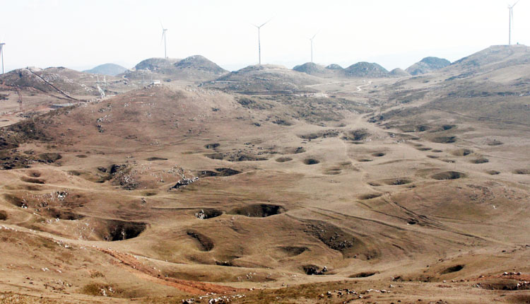 ▲在盐仓镇和板底乡交汇处的万亩草场百草坪腹地,分布着许多的小天坑,一个连着一个的天然小天坑,形成了一道独特的自然景观。