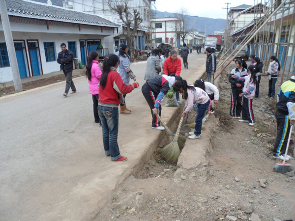 ▲为全面推进麻乍乡整脏治乱工作,日前,该乡组织麻乍中学全校师生清扫街道。图为清扫现场。 (赵康 胡雍辉)