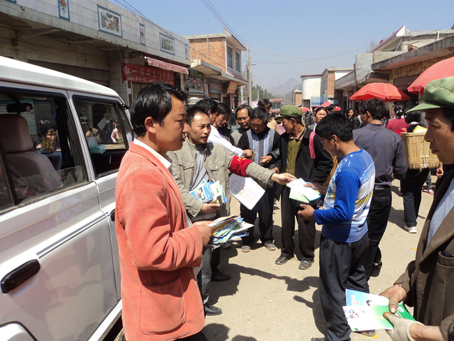 ▲4月5日,龙场镇充分利用赶集天人员较为集中的机会,向广大人民群众发放计划生育优质服务宣传手册、计划生育法律法规宣传手册及青春期知识宣传资料等计生宣传资料。并为群众现场讲解计划生育相关的优惠政策。图为发放宣传资料现场。(龙街镇)