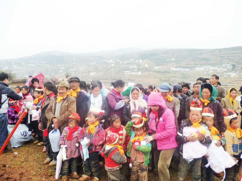 ▲4月8日,香港善启慈善基金会伍启宁小姐一行到迤那镇双营村举行扶贫物资发放和爱心水窖奠基仪式,为100多户贫困村民发放抗寒衣物和文具等,并捐赠价值14万资金修建爱心水窖50口。图为领到捐赠衣物的困难群众。(林荣君 摄)