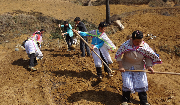 ▲云贵乡组织全乡干部职工通过观看电视及阅读报纸学习长顺县敦操乡“背篼干部”的感人事迹,该乡把学习“背篼干部”的精神体现在实际行动中, 扎实开展为群众办实事、做好事,做群众最贴心的好干部等活动。图为干部职工在水塘村指导苗族群众种植半夏。