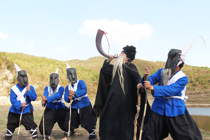 今日的板底,文化服务体系建设和旅游基础设施建设正如火如荼进行,独特的喀斯特地貌所形成的奇丽风光和五彩纷呈的民族民间文化必将成为“千年乌撒,文化乌蒙”的亮丽风景,定能推进乡村旅游业健康和谐可持续发展。图为撮泰吉剧照。