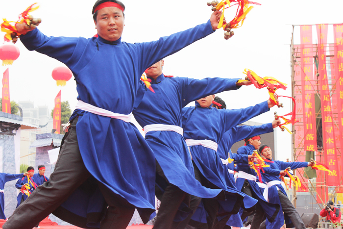 据悉,水西古城规划投资7.5亿元,是黔西县着力打造的旅游开发项目,主要建设为水西博物馆、古驿道、古城门、古街区、彝族文化风情酒店及其他旅游配套服务等设施。图为“铃铛舞”表演。