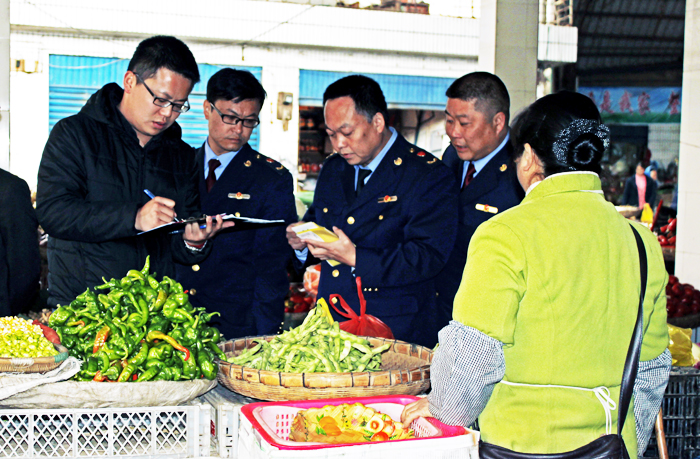 ▲4月18日,县工商局开展迎旅发大会食品安全移动检测活动,对县城内各大市场里的蔬菜、水果、腌制品等食品进行抽样检验,监管流通渠道,确保食品安全。据了解,旅发大会期间的食品安全受到省工商局高度重视,把全省唯一一辆食品安全移动监测系统派驻毕节,全程跟踪食品安全服务。图为省工商局食品检验技术人员正在我县城北农贸市场做食品登记留样。 ( 本报记者 沈光勇 )