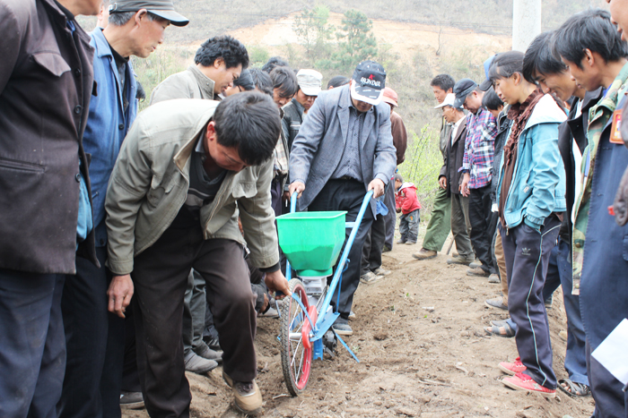 ▲4月17日,板底乡板底村举行“一村一个党建示范服务基地”暨中草药育苗技术培训,农技人员就育苗前期田间管理、播种等中草药种植技术作了细致讲解。图为培训现场。