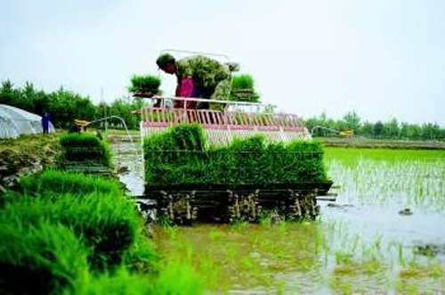 4月19日,江西南昌县标兴农机农技合作社工作人员正在使用插秧机插秧。当下正值江西春耕插秧季节,江西南昌县的农机合作社也进入最忙碌的阶段。当地农民只需要一次性支付相应的服务费用和种子,农机合作社即可负责育秧、机器插秧,农田除草、收割、脱谷等一整套程序,这种新的耕作方式所需劳动力仅是传统耕作的几十分之一,被戏称为“穿着皮鞋种地”。据介绍,南昌县共有各类农业合作社548家,为农户提供养殖、种植等方面的服务。(新华社记者 周密 摄)