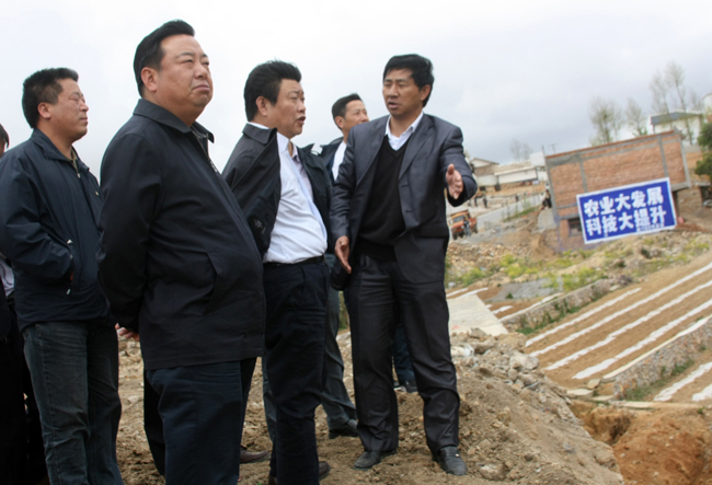 潘家华一行首先来到迤那镇合心村马家水库查看工程建设情况,在听取水利局介绍工程施工情况后,潘家华要求,要加快工程建设进度,烟草部门要积极投入以烟水配套工程为主的烟叶生产基础设施建设,改善烟区的生产生活条件,努力提高烟叶生产的综合水平,使烟水工程惠及烟区群众。