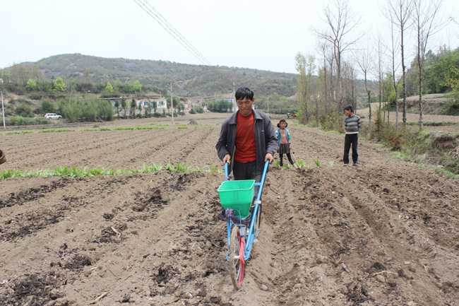 ▲近年来,板底乡积极调整产业结构,采取“农业稳乡”的发展战略,通过“公司+合作社+基地+农户+组织”的层层连接方式,即把外资“请了进来”,又把农产品“送了出去”,实现了“农业增效,农民增收”的双赢。图为正在播种的“白术”种植户。