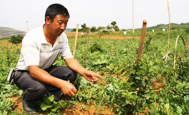 陈杰和他在中药材基地内精心培育的金银花