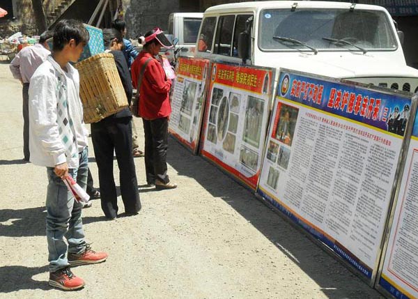 据了解,此次活动通过以与群众面对面,心贴心的宣讲,以发放宣传单、张贴宣传画等方式向群众宣传“打非治违”法律法规知识,当天,共发放宣传单1200份,摆放宣传展板9幅。 图为过往群众观看展板。(金斗乡党政办)