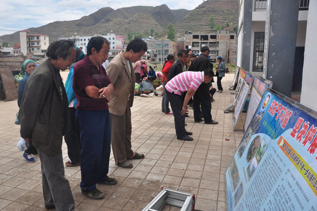5月7日,东风镇开展打击非法开采宣传活动。活动采取群众咨询、讲解安全生产法律法规、发放宣传资料等方式,此次活动接受群众咨询100余人次,发放宣传资料600多份。图为当地群众正在观看展板。 (张仙 向禹平 摄)