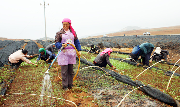5月9日,农民在迤那镇麻窝山中药产业示范基地党参育苗基地劳作。