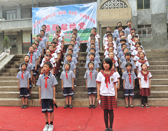 ▲近日,东风镇中心校举行“祖国好,家乡美”主题教育活动,全校600多名学生组成24支演唱队伍唱红歌,颂祖国,赞家乡演唱活动。