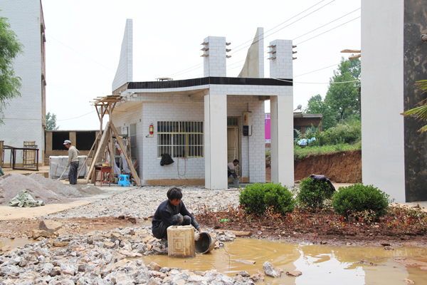 ▲日前,盐仓二小为美化亮化校园环境,投资7万元对校园门景进行打造。该校门建成后,无论是造型,还是文化内涵,在我县同行业中首屈一指。图为建设中的该校园大门。