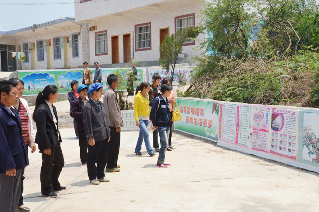 ▲近日,岔河乡计生协会在岔河村开展“母亲节”宣传活动。当天,共为妇检对象发放4000多元的洗衣粉和1200余分宣传资料。为40位计生贫困母亲发放帮扶金20万元。图为计生户正在观看计生文化长廊展板。