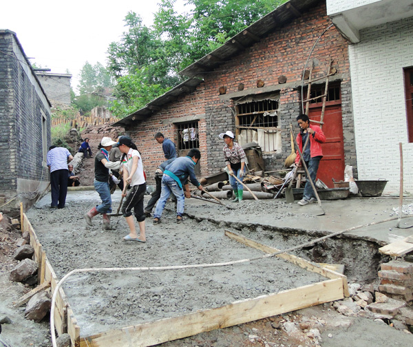 据了解,自开展“一事一议”财政奖补试点以来,该镇共筹资110万余元,群众投工投劳0.8万余个,硬化道路13.8公里,2950多户13500多群众受益。图为正在建设中的通组路。(张其福)