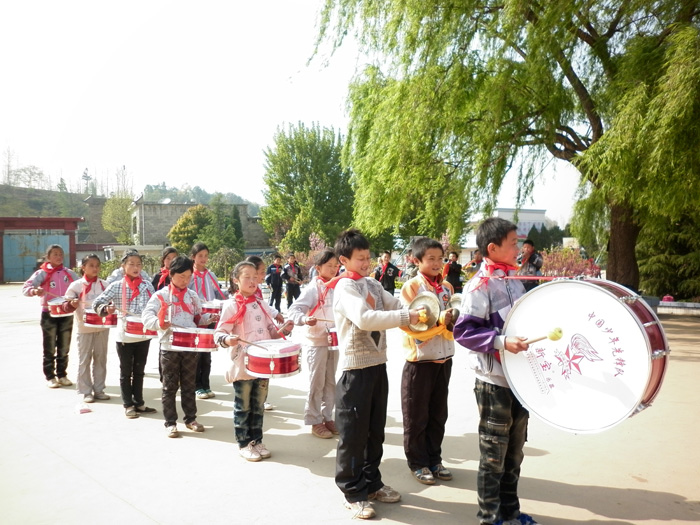 ▲一年一度的“六·一”儿童节即将来临,为了丰富校园文化生活,庆祝少先队员自己的节日,羊街中心校正在紧锣密鼓地为“六·一”活动排练节目。图为同学们正在进行鼓号训练。