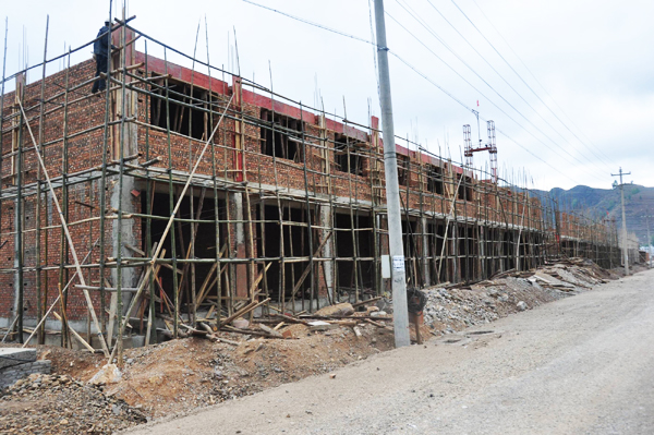▲近日,东风镇斥资3380余万元修建3万平米的地质灾害移民搬迁安置房。据悉,该工程为一期工程,完工后可解决350户受地质灾害影响的农户入住。二期工程正在积极筹划中,涉及387户2200余人。图为正在建设中的移民安置房。(姚文森 孔令伟 摄)