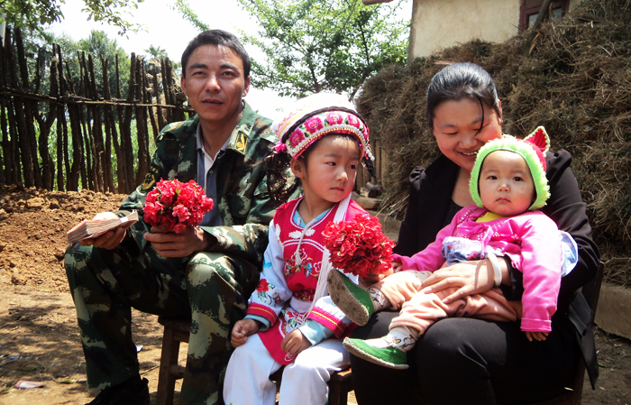 ▲日前,龙场镇计生部门专程为该镇元平村坪子组的李兴福家送去“二女户”结扎慰问基金1万元和大米十余袋。据了解,李兴福在外出做生意已经有十余年,受到外界“男孩女孩都一样”的生育观念影响,目前家里生有两个女孩,李兴福已经很满足了,并积极到当地落实了“二女结扎”手术。图为得到计生政策惠顾的李兴福一家幸福合影。(赵琴 摄)