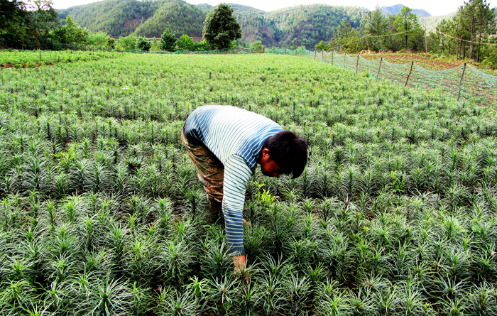 ▲近年来,麻乍乡在当地扶贫办、农牧局的引导和扶持下,通过项目推动、资金扶持等方式大力调整农业产业结构,引导农民发展特色中草药种植助农增收。据了解,今年该乡种植半夏、百合、折耳根等中药材的农户有250家,可带动全乡500余户农户共同致富。仅得营村五组村民张万燕家就种植4亩大百合,年产量可达5000余斤,今年收入可达7万多元。图为中草药种植户张万燕在大百合地里除草。(熊发愿 实习记者 杨文斌 摄)