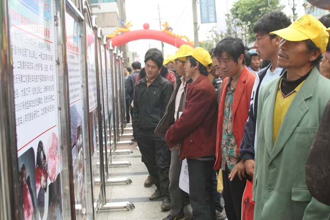 6月3 日,由县安委会牵头组织国土、安监、公安交警、交通运输、工能等多家部门开展6月安全宣传月活动,现场共制作宣传展板20多幅,展出内容涉及交通、建筑施工、预防地质灾害、煤矿安全等,发放各种宣传资料2万多份。副县长禄云参加了宣传活动。图为宣传活动现场。(本报记者 王德聪)