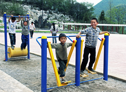▲今年来,金钟镇把改善人居环境与小集镇建设结合起来,为丰富群众文化生活,先后在大营、冒水等村选址建设生态小广场,目前,已在柳树湾、大营、冒水、红岩四个村寨建立了生态文化小广场,总投资逾200万元。总投资135万元的大营村小广场,占地7亩,场内设有假山、凉亭、公厕等设施。图为小朋友们在小广场健身。(王元勋 本报记者 沈光勇)