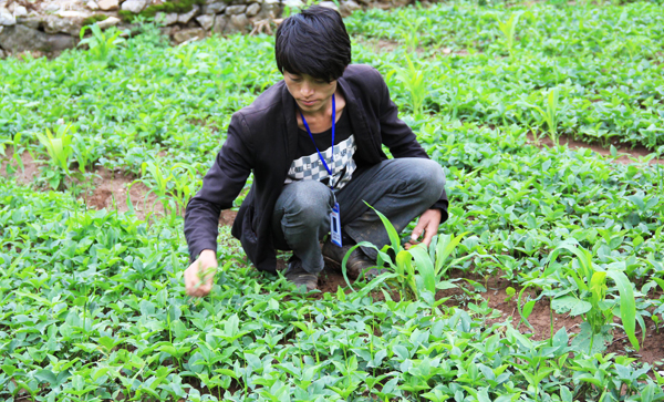 当日,在与他们的交流中,记者感到,他们想发展的激情四射。然而,他们也担心,在不断投入发展的过程中,由于效益不能马上立竿见影,顿时吹糠见米,怕资金链的断裂。担心不是多余的。把梦想变为现实道路充满艰辛曲折,但我们坚信,微型企业的“3个15万”和加上自身的努力,他们的梦想之花会越开越美丽,路会越走越宽阔。图为邓广伦在查看半夏长势。