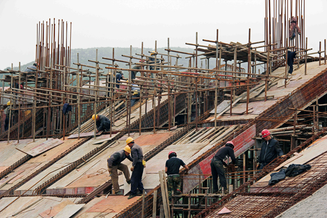 6月6日,记者走进体育场馆“奥体中心”项目建筑施工现场,施工单位正组织近50名工人师傅紧张有序地分组作业,圆形的坡面上到处是忙碌的身影,塔式吊车则轰鸣着运送建材,好一派壮观的劳动场景。目前,该项目主体框架建筑已完成80%。据悉,该项目计划于2013年全部建成,建成后的奥体中心不仅可以承办国家、省、市较大规模的体育比赛,也可为我县市民提供体育锻炼、竞技比赛较为优越的高标准健身环境。图为奥体中心忙碌的施工现场。(本报记者 沈光勇 通讯员 谢先文)