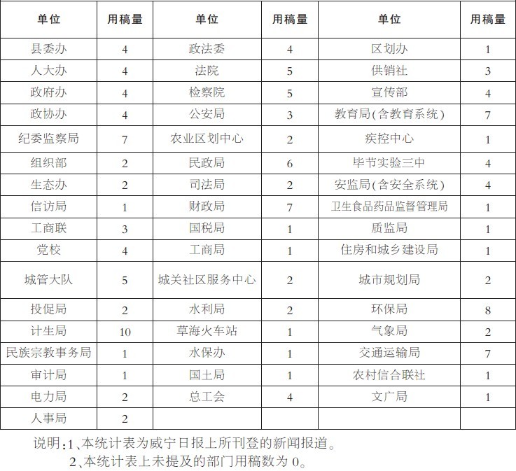 威宁日报2012年5月份用稿情况通报(县直单位)